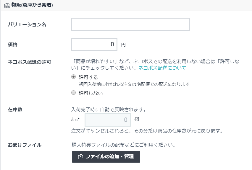 아래에 物販(倉庫から配送)/Physical (via warehous) 옵션이 추가됩니다.
