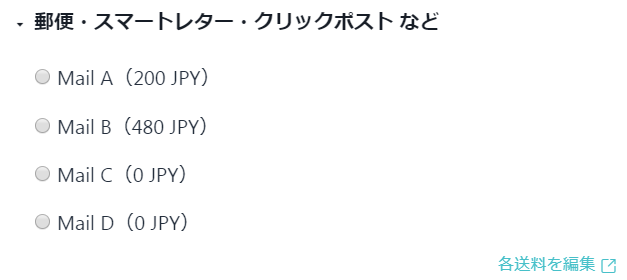 아래 선택지 (配送方法に基づいた送料をとる / This price excludes the shipping fee.(배송방법에 준하여 송료를 받는다)) 를 선택하시면 아래와 같은 선택지가 뜹니다.
