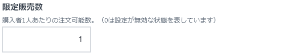 구입자 한 명 당 가능한 주문 가능 수 (0은 설정이 무효한 상태를 표시합니다)